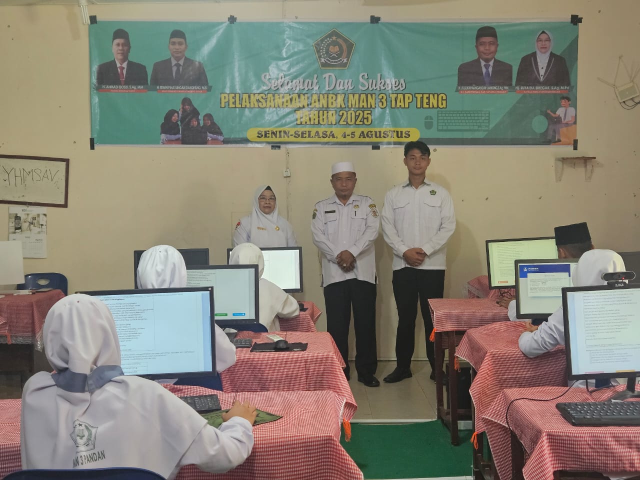 Pandan (Humas). Kepala Kantor Kementerian Agama Tapanuli Tengah H. Julsukri M Limbong,SA MM didampingi oleh Kepala MAN 3 Tapanuli Tengah Hj. Juraida Siregar, S.Ag M.Pd meninjau secara langsung pelaksanaan Asesmen Nasional Berbasis Komputer (ANBK) Tingkat Madrasah Aliyah di MAN 3 Tapanuli Tengah. Senin, 04 Agustus 2025 bertempat di Laboratorium Komputer MAN 3 Tapanuli Tengah.