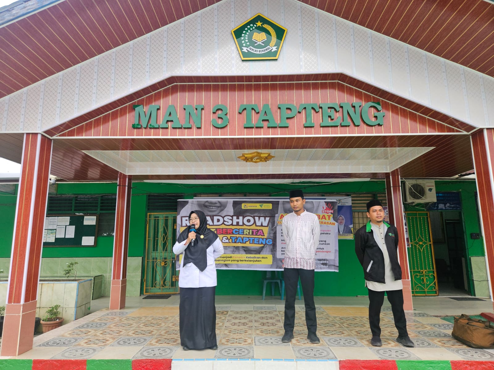 Kepala MAN 3 Tapanuli Tengah Hj. Juraiada Siregar, S.Ag M.Pd mengucapkan selamat datang kepada tim roadshow Sumut Bercerita. Beliau juga mengatakan bahwa Tujuan kegiatan tersebut adalah sebagai bentuk solidaritas dan kepedulian MAN 3 Tapanuli Tengah terhadap rakyat palestina dengan partisipasi memberikan kontribusi terbaiknya.Juraida juga menghimbau seluruh peserta didik agar memberikan infak terbaiknya.