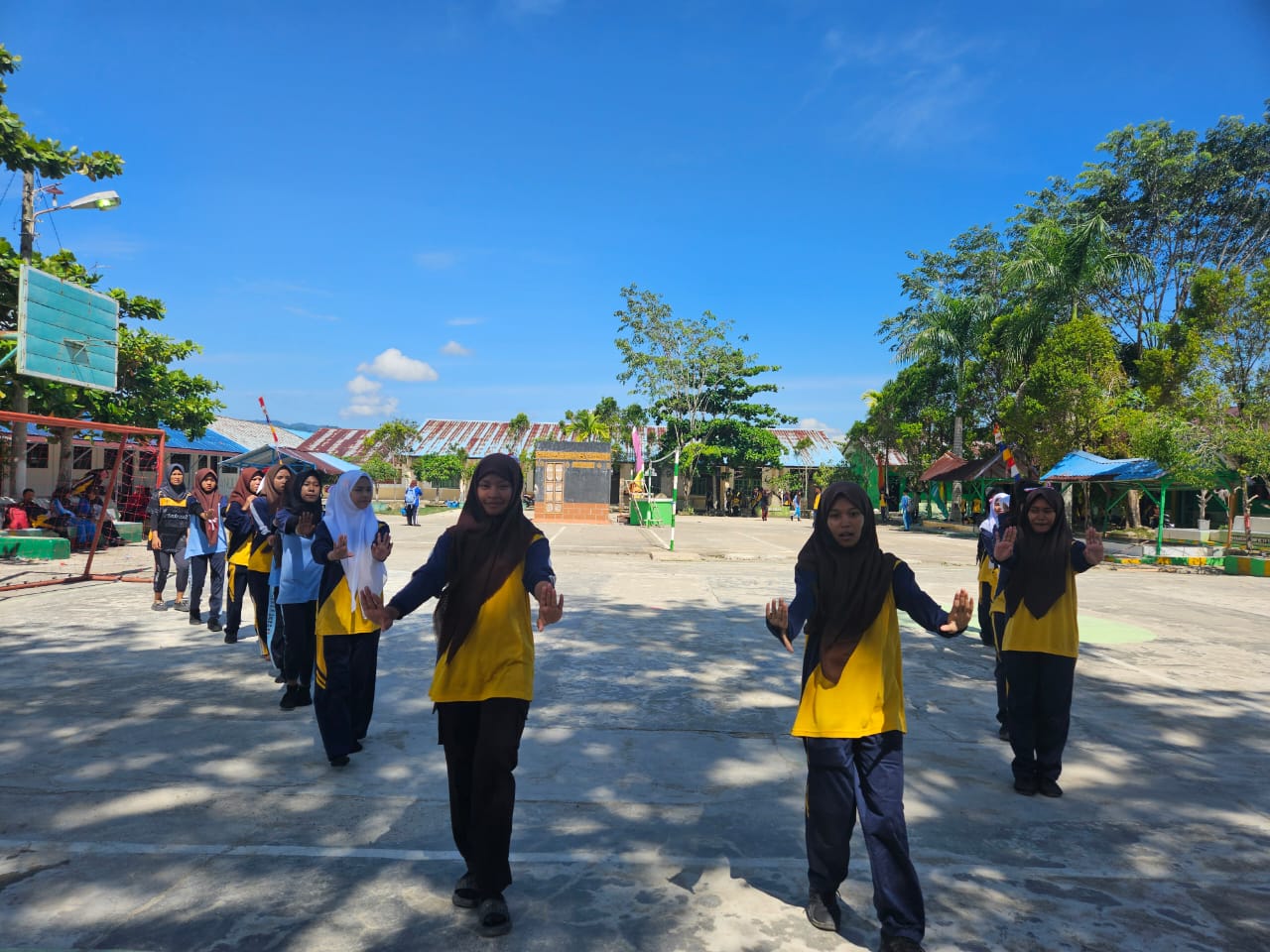 Di bawah bimbingan pelatih tari, para anggota tim berlatih dengan penuh semangat dan disiplin. Gerakan demi gerakan diperhalus, formasi diperkuat, dan kekompakan terus diasah agar penampilan nanti dapat memukau penonton. Suasana latihan terlihat penuh konsentrasi, namun tetap hangat dan penuh tawa.