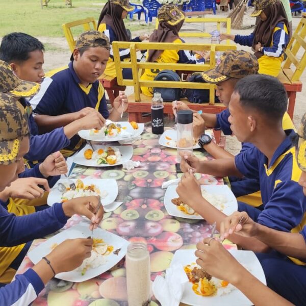 Peserta Didik MAN 3 Tapanuli Tengah Makan Bersama Usai Aksi Bersih Pantai dan Laut